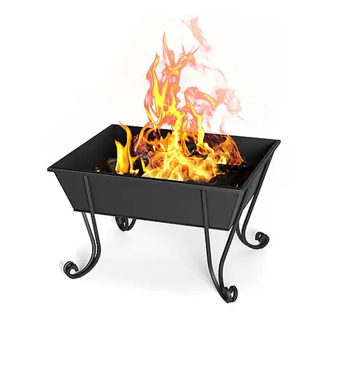 Чаша имеет прямоугольную форму и хорошо впишется в любой ландшафт как готовый элемент дизайна. С её помощью легко организовать костровую зону в удобном для вас месте: просто перенесите чашу и расставьте вокруг неё кресла или стулья.