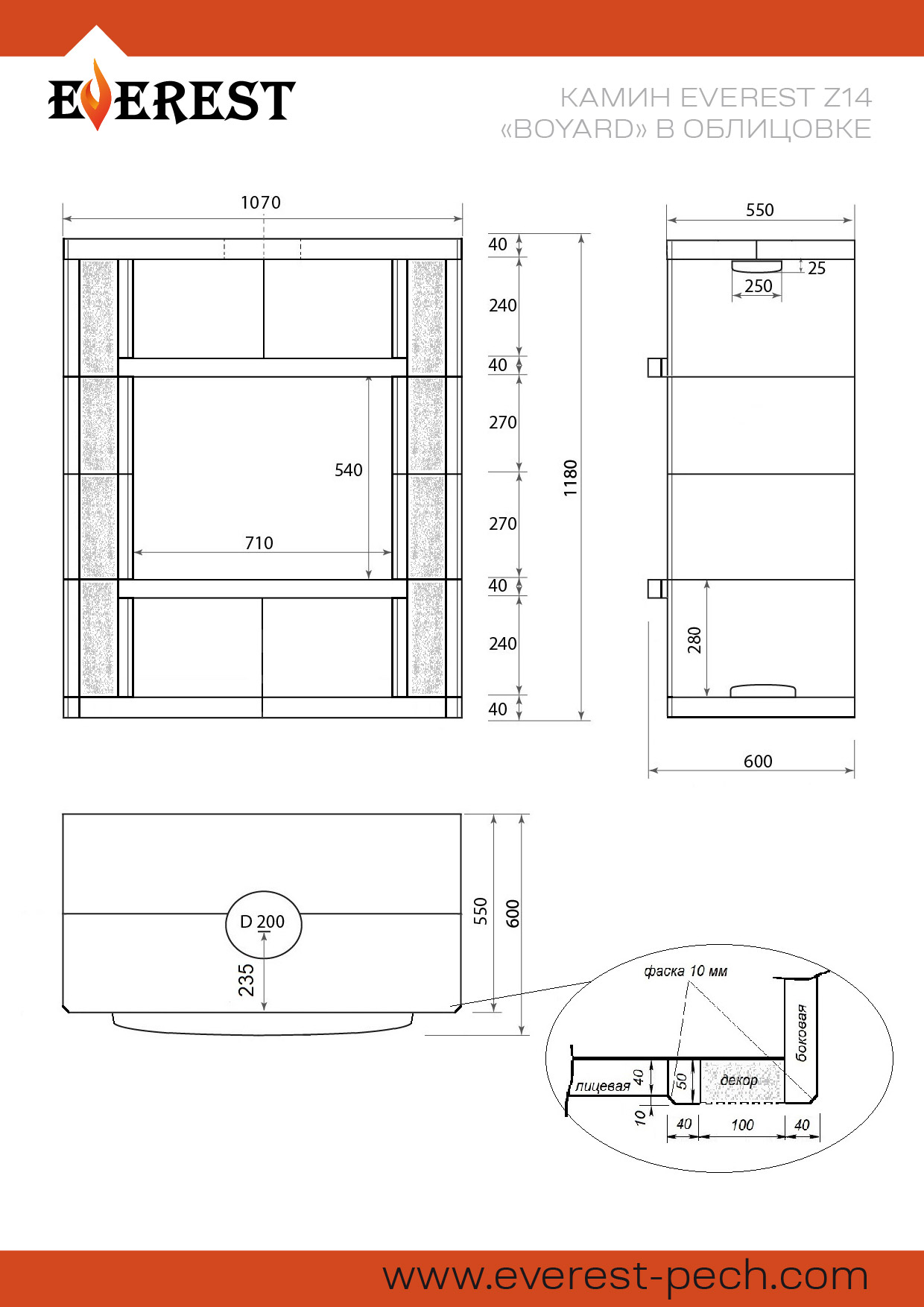 Толщина облицовки: 40 мм.