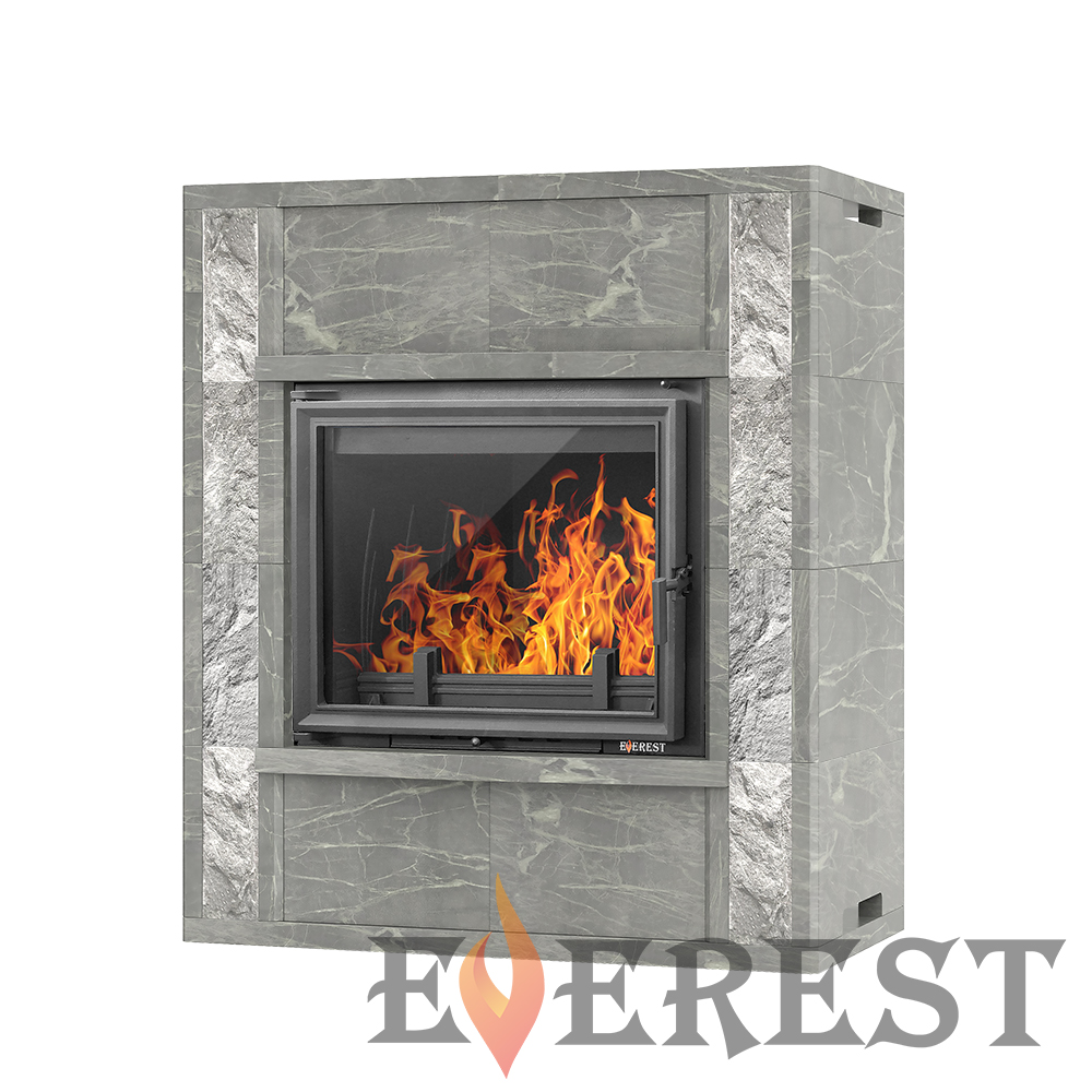 Камин EVEREST A16 изготовлен из качественного жаростойкого чугуна (ГОСТ 1412-85). Вес камина составляет 524 кг. Модель рассчитана на обогрев помещений объёмом до 320 м³. Камин имеет высокую аккумуляционную камеру (дымосборник) и часто расположенные радиаторы на корпусе топки, которые обеспечивают высокий КПД и увеличивают мощность до 16 кВт. В аккумуляционной камере (дымосборнике) установлен чугунный пламегаситель. Патрубок дымохода оснащён поворотным шибером. Заслонка изготовлена из чугуна, а её положение регулируется ручкой на передней панели топки.