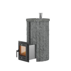 Конструкция печи включает в себя закрытую каменку из нержавейки марки AISI-430 толщиной 4 мм, расположенную в верхней части топки. Каменка размещена прямо на пути пламени и дымовых газов, что позволяет нагреть камни до температур свыше 600°C.