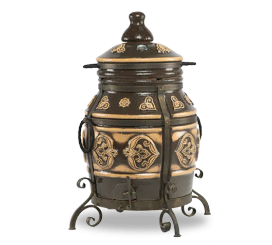 Тандыр покрыт глянцевой глазурью черного цвета с орнаментом