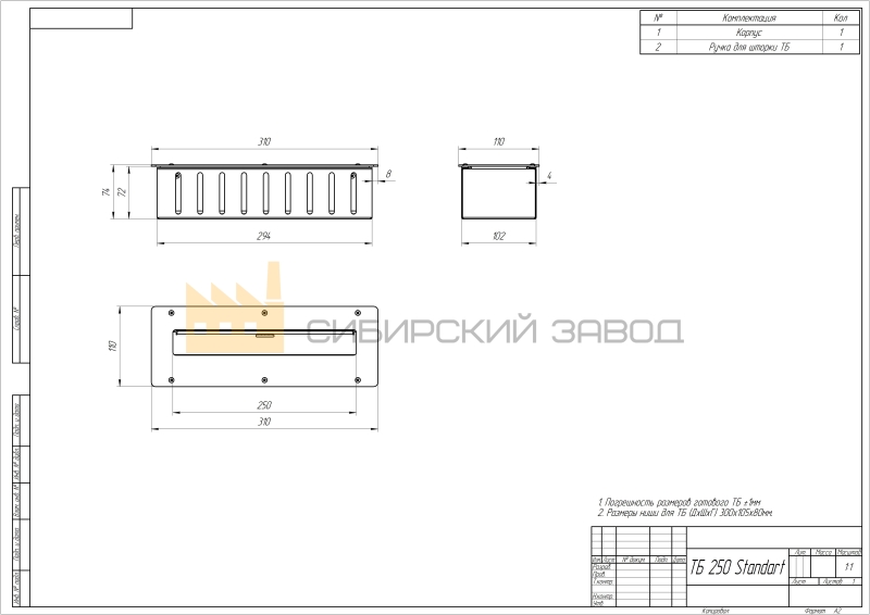 Габариты 310×110×67