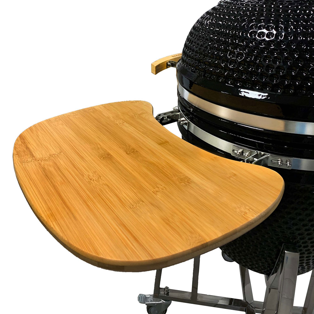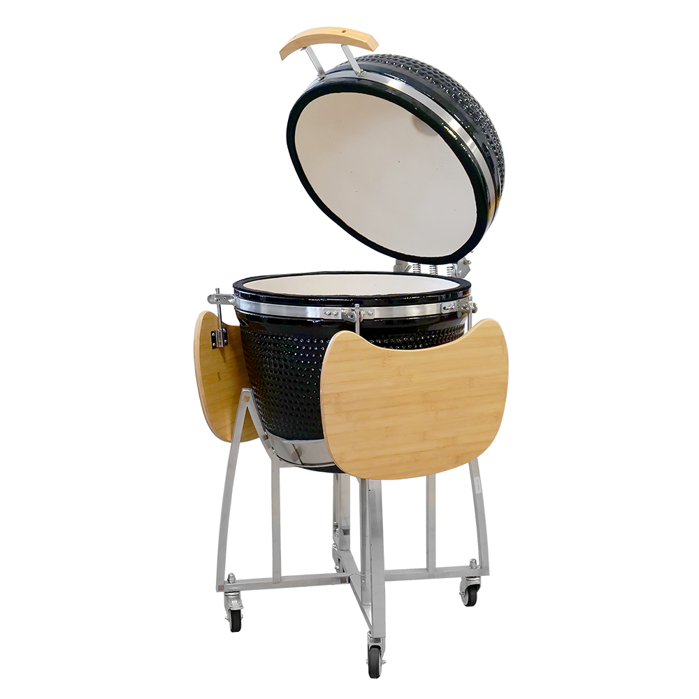 Верхняя крышка гриля открывается с помощью ручки из бамбука, расположенной на передней поверхности керамического гриля.