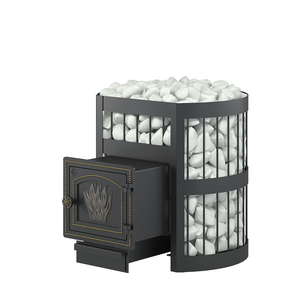 Банная чугунная печь Легенда Стандарт 12 (Дт-3) укомплектована чугунной дверцей Везувий Дт-3. Конвекционно-вентилируемый кожух «Стандарт» изготовлен из металлического прутка диаметром 6 мм покрашенной черной термостойкой краской.