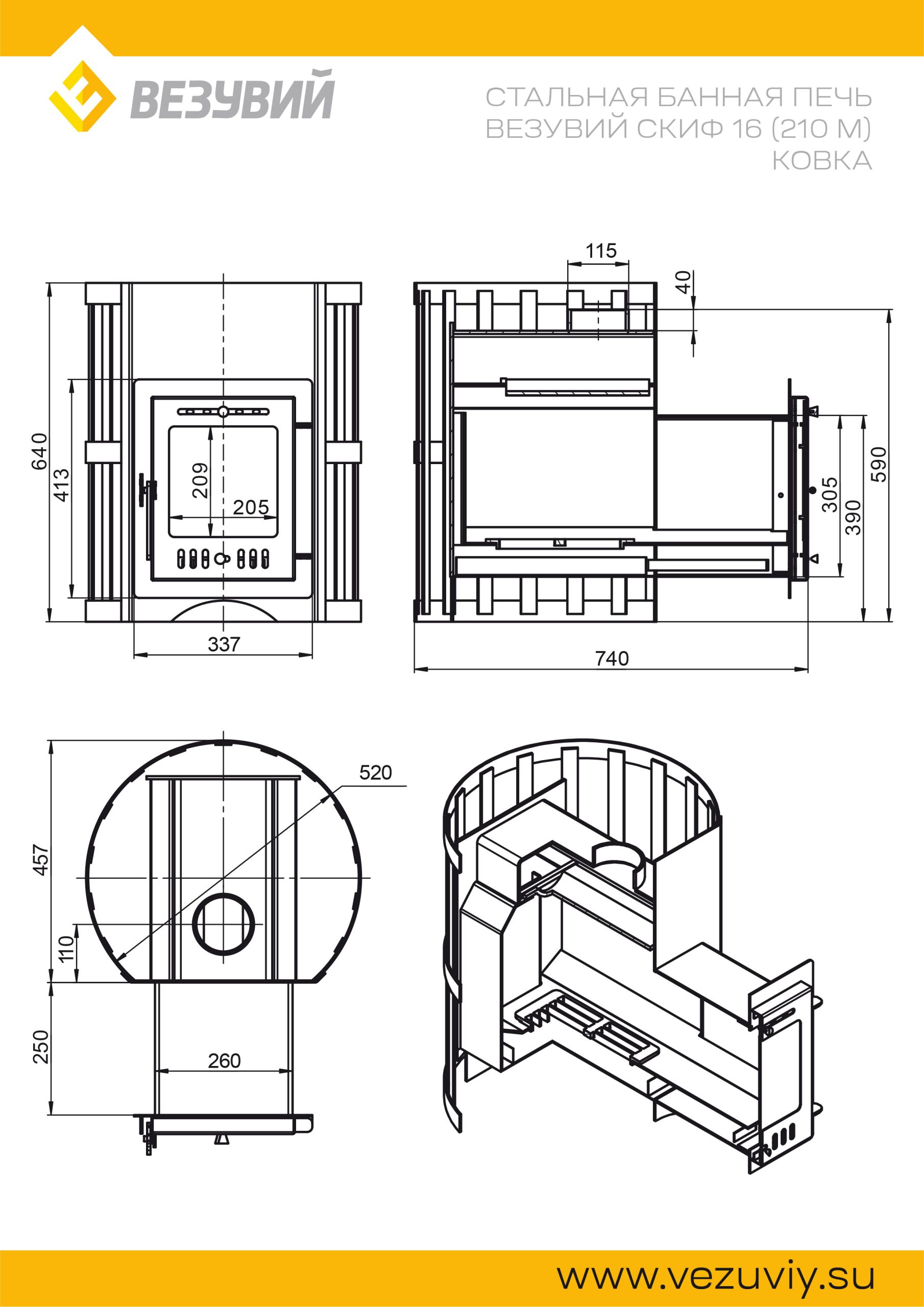 Стальная банная печь ВЕЗУВИЙ Скиф Ковка16 (210) «М» предназначена для прогрева парного помещения в бане и поддержания необходимой температуры во время парения. Печь СКИФ оборудована открытой каменкой, закладываемой камнями для бани (приобретаются отдельно).