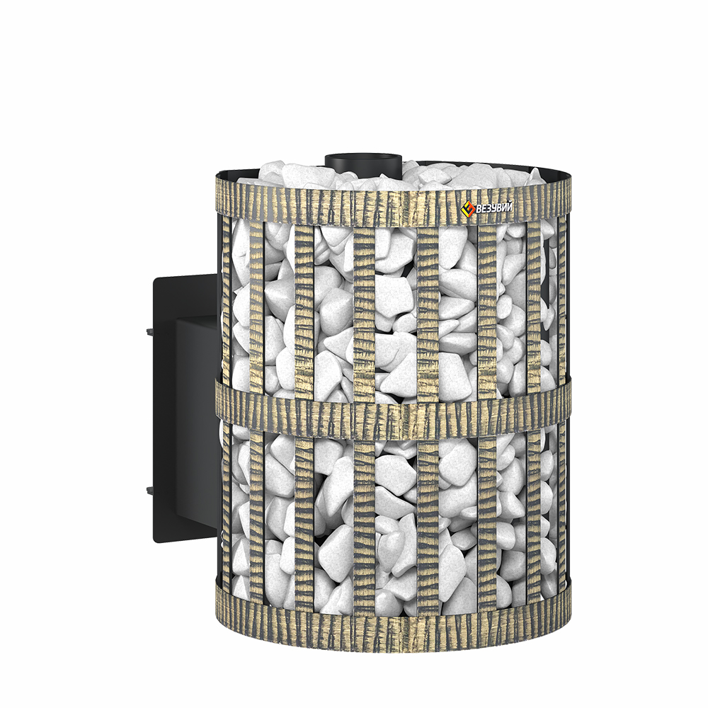 Печи Везувий СКИФ оснащаются сеткой для камней. Сетка сделана из кованой стальной ленты шириной 40 мм. В сетку по всей высоте укладываются камни для бани, обеспечивая большой объём заклада и длительное удержание тепла после прогрева каменки.
